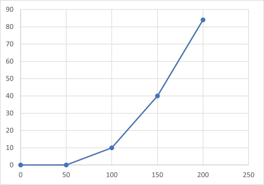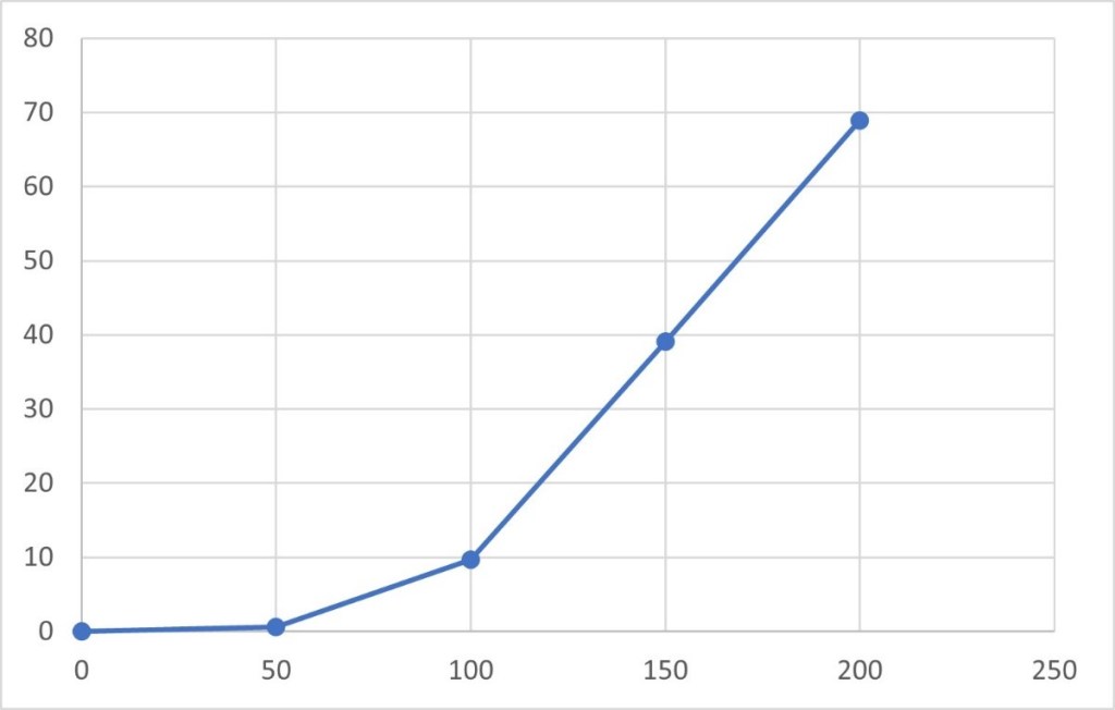 To do this we picked 3 paths to gather results from, a quadrat was placed at the centre (0 cm) of a path, the area was analysed and then the quadrat was moved 50cm outwards from the centre of the path, this was repeated 10 times for three different paths. The objective was to see how the Lichen changed in the different paths as you moved away from the centre. This is a popular dog walking area and the study was used to see how this affects distribution of lichen. The following graphs show an estimate of the percentage of lichen coverage as the quadrat moves away from point 0cm each time.