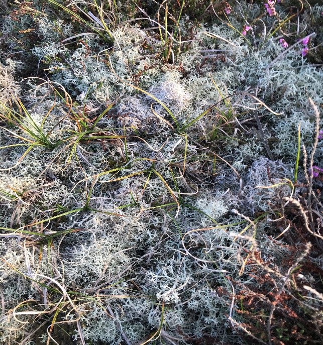 Winterton is home to wide variety of vegetation and within this the Lichen Cladonia Portentosa are found, this is a one of the most common reindeer lichens. As shown below the lichen is grey/blue in appearance and spreads across the sand and is important in that is contributes to stable dune structure.